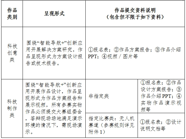 1.科技创意类参赛作品要求基于北斗卫星导航技术开展 “智能导航+”创新应用性方案研究,作品呈现形式为作品方案报告。