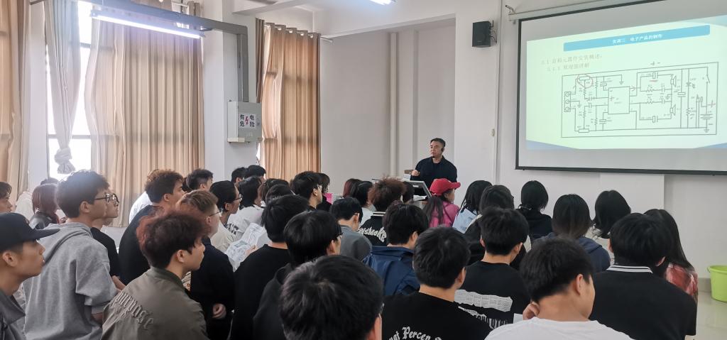 此次公开课由刘欢老师讲授,其主讲的课程为《电子实训》,项目名称为“电子产品制作”。《电子实训》课程为探花系列公共基础必修实践类课程,课程综合性高,融合了多学科知识,具有极强的实践性。刘老师注重培养学生的实操能力,课堂上充分运用任务驱动、实物演示等多种教学手段,很好地调动了学生的实训积极性。在讲解电子元器件焊接技术时,刘老师给同学们介绍了大国工匠潘玉华的优秀事迹,让同学们追求精益求精的工匠精神,培养严谨认真、追求卓越的职业素养。刘老师将思政育人功能充分运用到课堂教学当中,在场师生深受启发。