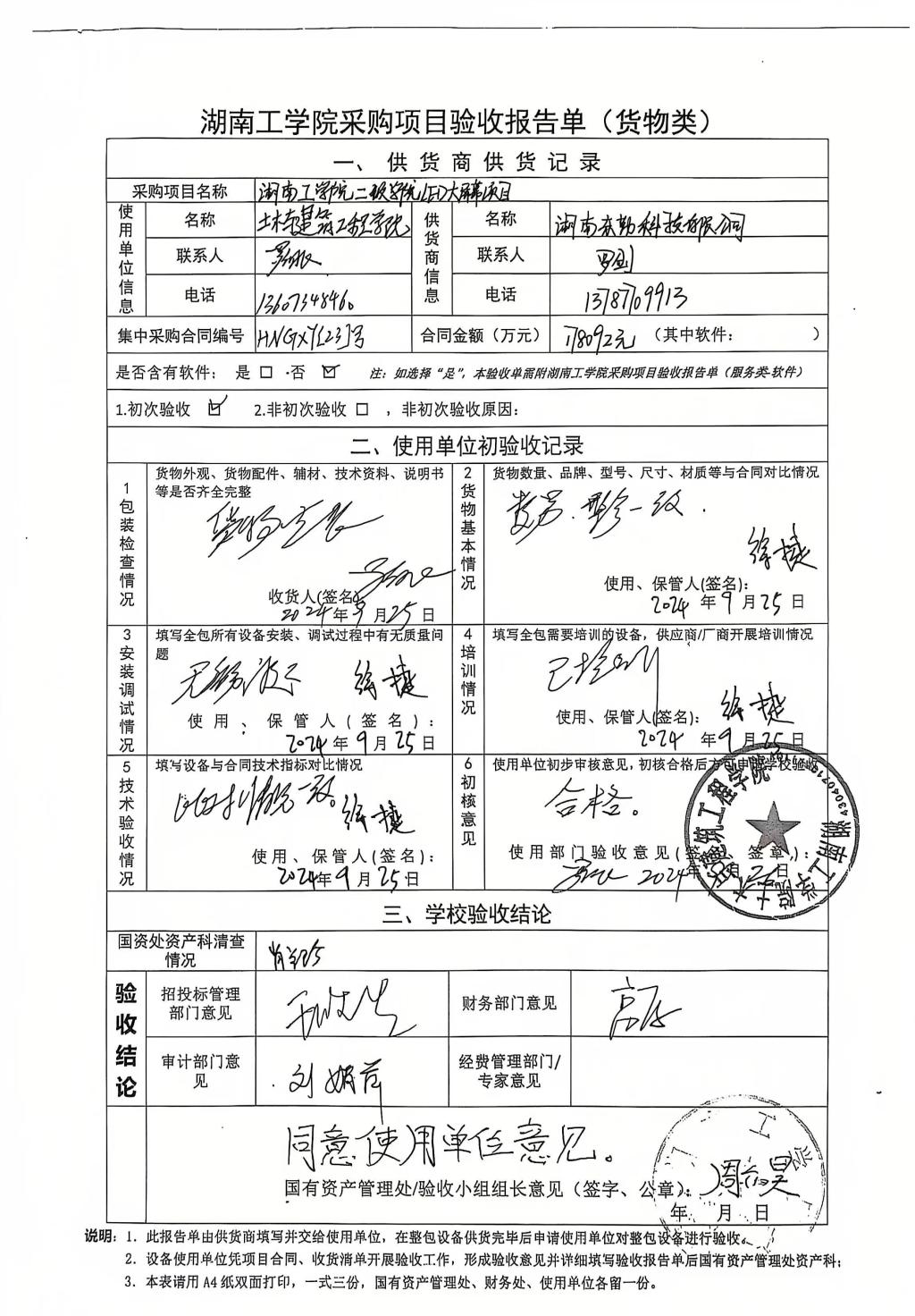 2024年10月关于HNGXY2024【23】号 购字2024【10】号采购项目验收情况公告