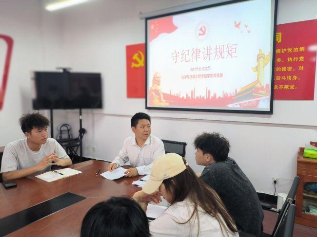 5月31日下午,化学与环境工程学院学生第一党支部书记吕海华在1310会议室为全体毕业生党员举行了“教育引导毕业生党员守纪律讲规矩,争做合格党员”的党课。