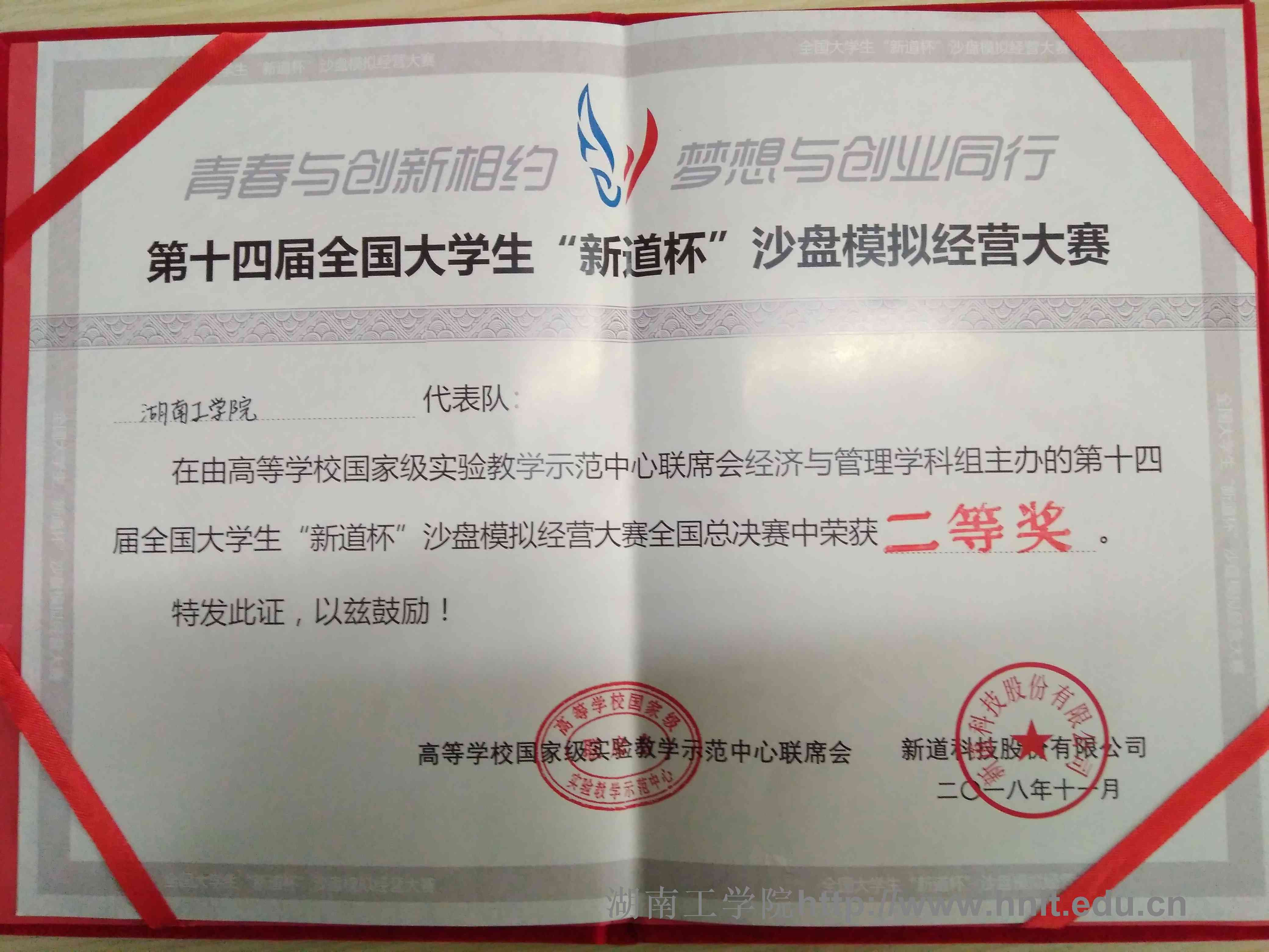 2018年11月10日—11日,第十四届全国大学生沙盘模拟经营大赛全国总决赛在中南财经政法大学成功举行,经过紧张而激烈的博弈角逐,探花系列由谢咏春、刘羽、陈旭、许涛、李梓寒等同学(指导教师:刘锦志)组成的代表队最终荣获全国二等奖,创下探花系列在该项赛事中的历史最佳成绩。