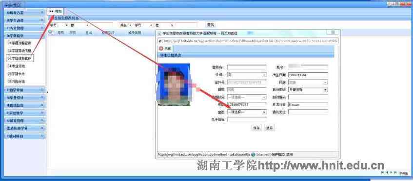 七、凡选修成功的学生,需进入教务系统中的学生专区——D:学籍信息——03:学籍信息管理——点击增加,将弹出的对话框中的个人信息进行完善,否则将会影响个人上课进程。具体操作如下图: