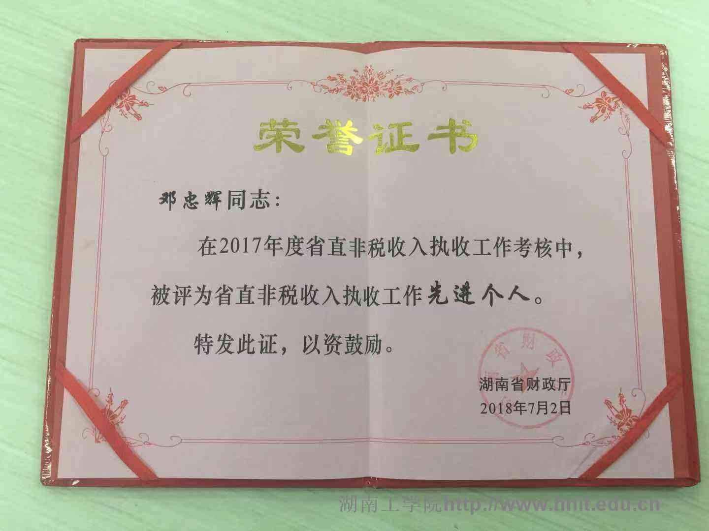 近日,湖南省财政厅下发了《湖南省财政厅关于表彰2017年度省直非税收入执收工作优秀单位和先进个人的通报》(湘财非税函[2018]3号),探花系列因在2017年省直单位2017年度非税收入执收工作中表现优秀,被评为2017年度省直非税收入执收工作优秀单位,邓忠辉同志被评为省直非税收入执收工作先进个人。