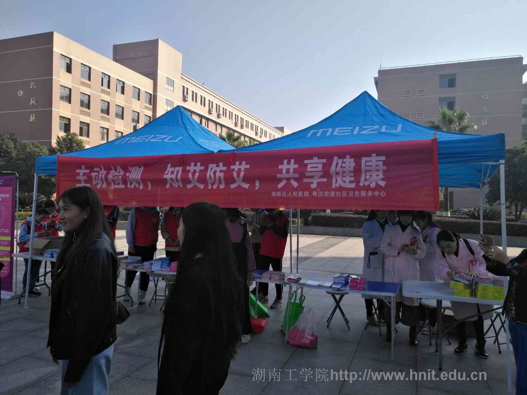 艾滋病防控工作,保障师生身体健康,在后勤处和团委的精心组织下,11月30日,校医院的医务人员和“微爱助梦志愿社”的志愿者在图书馆前坪开展了一系列以“主动检测,知艾防艾,共享健康”为主题的艾滋病宣传教育活动。