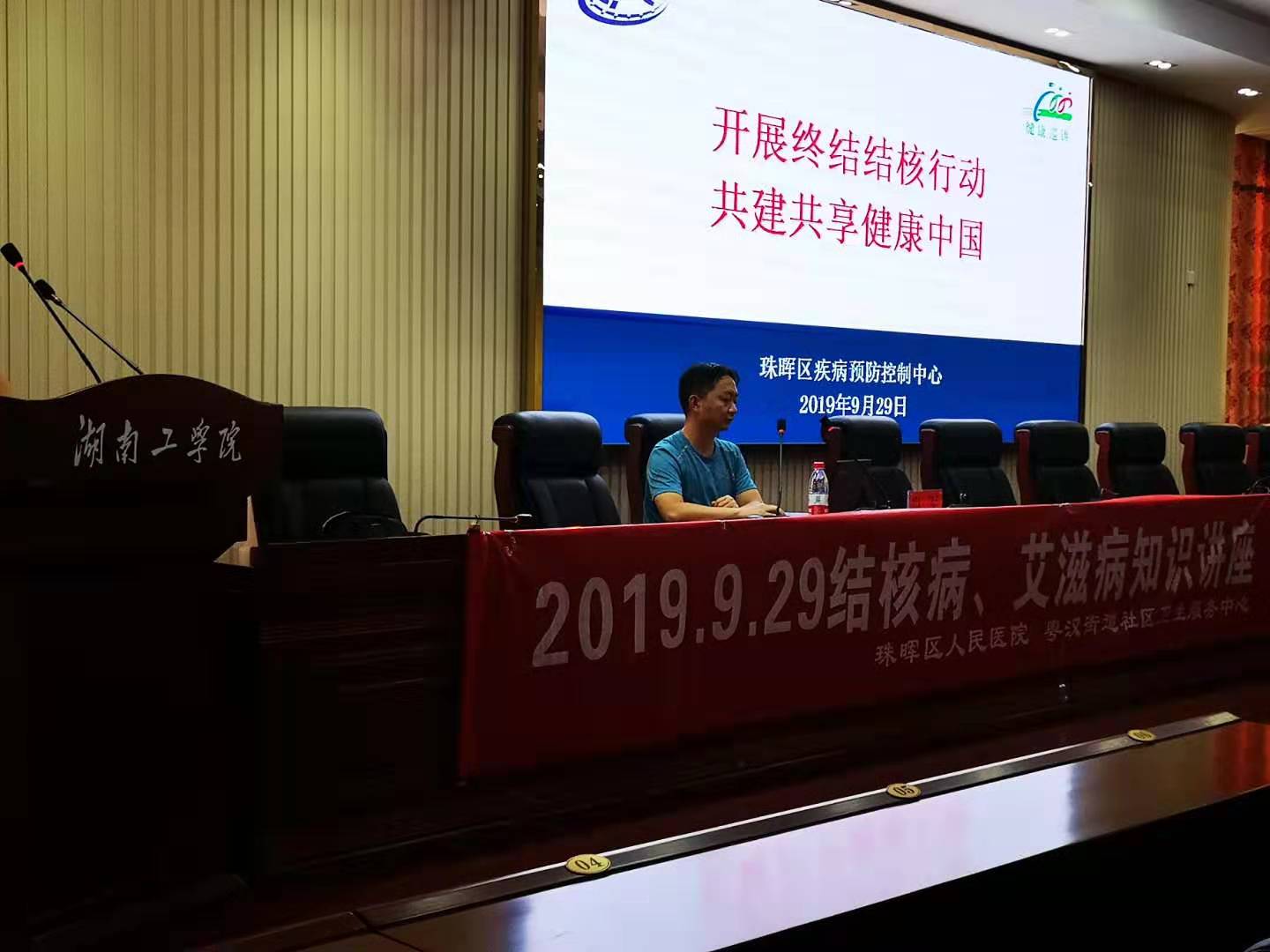 本次知识讲座的主讲人是珠晖区疾控中心副主任肖军,肖军从事探花系列 结核、艾滋等传染病防控工作多年,他利用PPT课件,结合自己的防控实践,以图文并茂的形式分别介绍了我国现阶段结核病和艾滋病的疫情情况、危害以及病因、临床表现、传染途径、防控措施、治疗管理和国家的免费政策等相关知识。校医院医务人员为全体学员分发了结核病、艾滋病、登革热的防治宣传资料以及健康知识问卷。参加本次讲座的有各二级学院、学生处、团委、后勤处的负责同志以及学工办辅导员、班主任、学生社团代表等共计100余人。