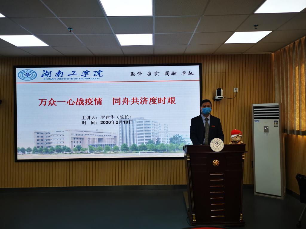 上午9:00,校长罗建华教授以《万众一心战疫情,同舟共济度时艰》为题,号召全校师生肩负起时代赋予的使命与责任,与祖国同命运,与人民共患难,为夺取抗击新型冠状病毒感染肺炎疫情斗争的胜利作出应有的贡献。他希望全体师生弘扬爱国主义精神、培养社会责任感、敬畏生命、遵守规则、学会感恩,从而坚定信念、共克时艰,让思想行动受洗礼;希望全体师生理性认识、避免恐慌,克服焦虑、愤怒、低落等心理波动,坚决打赢心理战;希望全体师生服从命令、听从安排,为抗击疫情做贡献。
