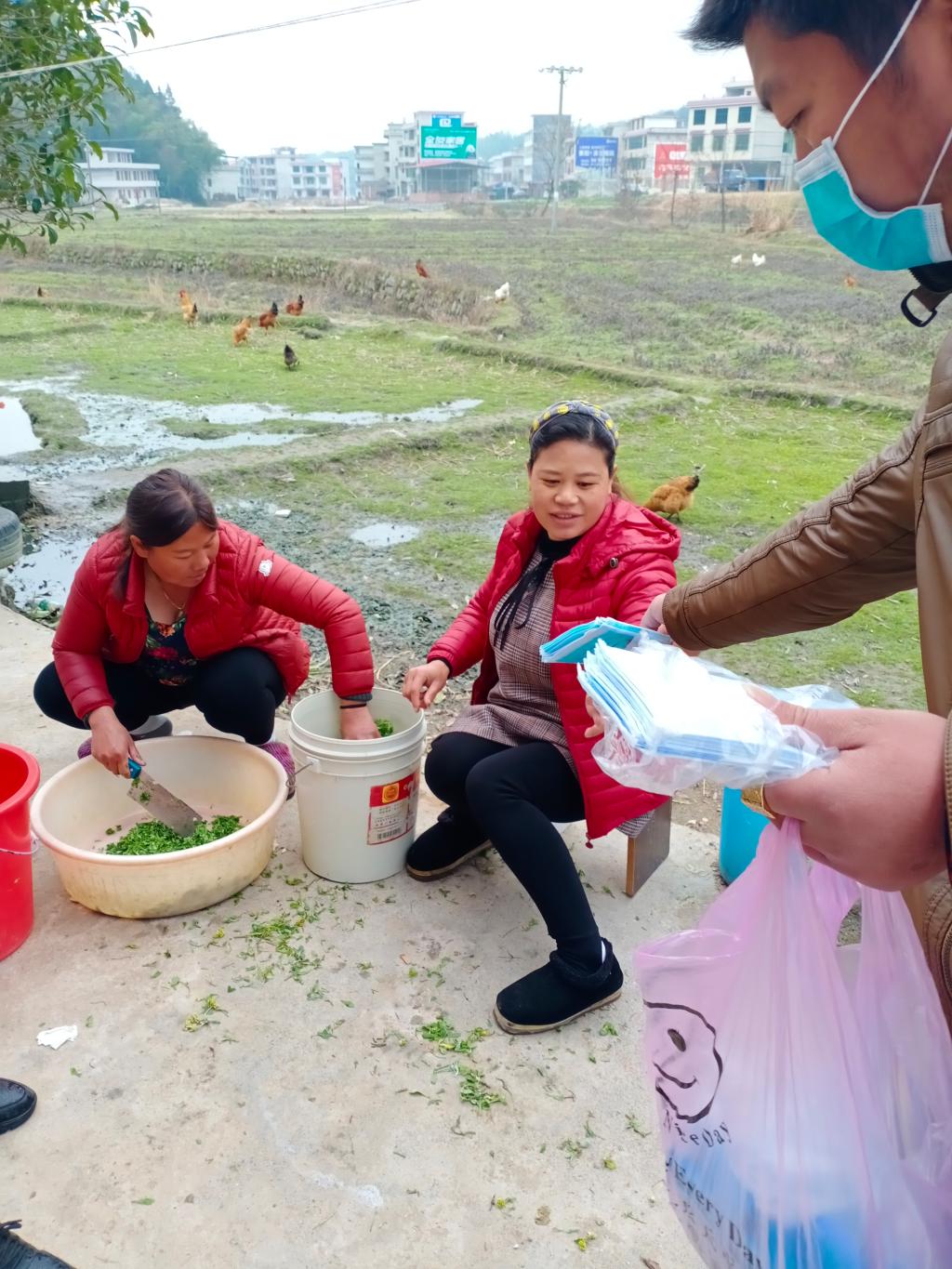 “想去超市买东西,没有口罩进不去。”很多村民没有口罩,衣食住行都受到了极大的影响。疫情防控战打响以来,队长俞斌每天在筹措村民必备的口罩而努力。2月18日,经过多方协调的口罩终于邮寄到了村里。工作队与村两委迅速组织村医、志愿者到每家每户进行体温登记、口罩发放工作。“有了口罩,我们就可以走出家门,出去购买农资农具,开展春耕生产工作,感谢帮扶工作队。”