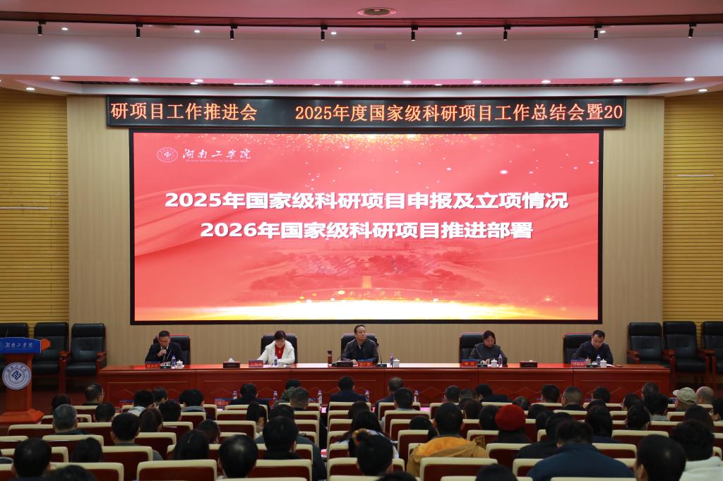 在明翰报告厅召开2025年度国家级科研项目总结暨2026年度工作推进会,全面总结过去一年科研工作成绩,部署新一年重点任务。校党委副书记、校长曾广胜主持会议并作总结讲话。