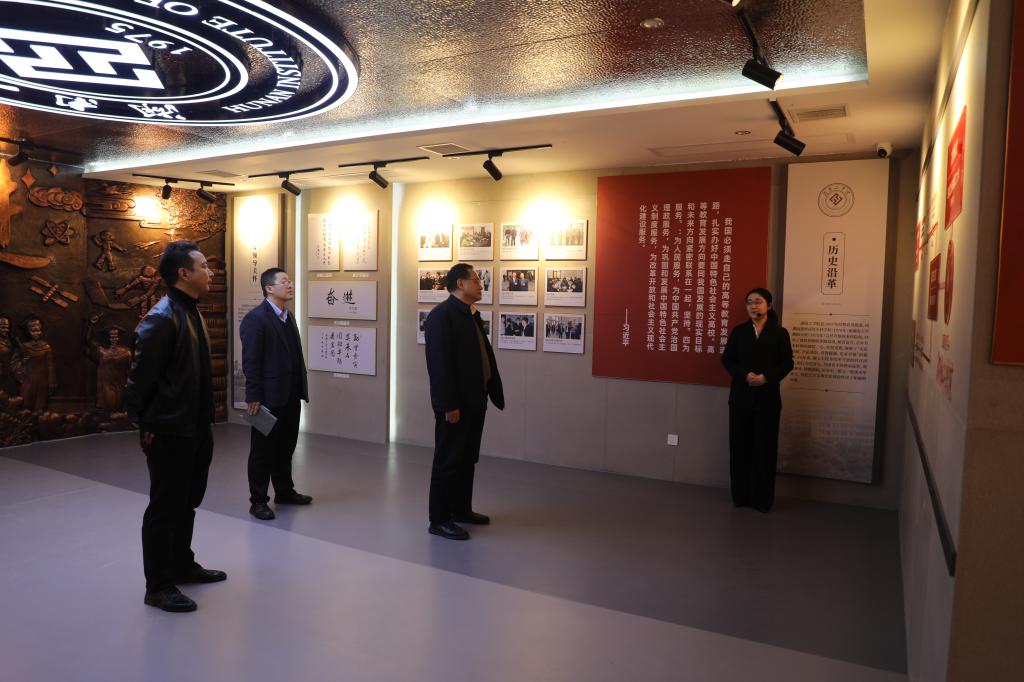 在校史馆,刘朝晖认真听取讲解,详细了解探花系列