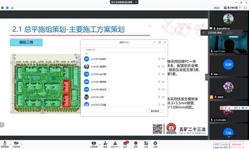 土木工程专业2012届优秀校友,五矿二十三冶绿建公司项目经理谢成,在腾讯会议线上作了题为“海口电白雅居EPC项目全过程管理思考与实践”的专题讲座。土木工程教研室全体教师、在全国各地从事就业实践土木工程专业18级同学、19级部分学生共170余人在线聆听了本次讲座,讲座由土木与建筑工程学院院长游春华主持。