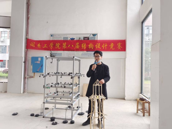 赛后指导老师何根对本次大赛进行了点评,提议同学们做模型时,要将“好钢用在刀刃上”,要将充分利用竹质材料的特性进行结构设计。何根还充分肯定了所有参赛同学的努力与付出,并对在本次竞赛中给予大力支持的老师和同学们表示衷心的感谢。