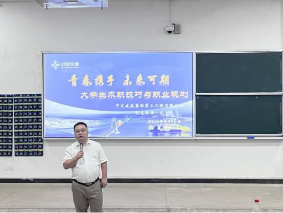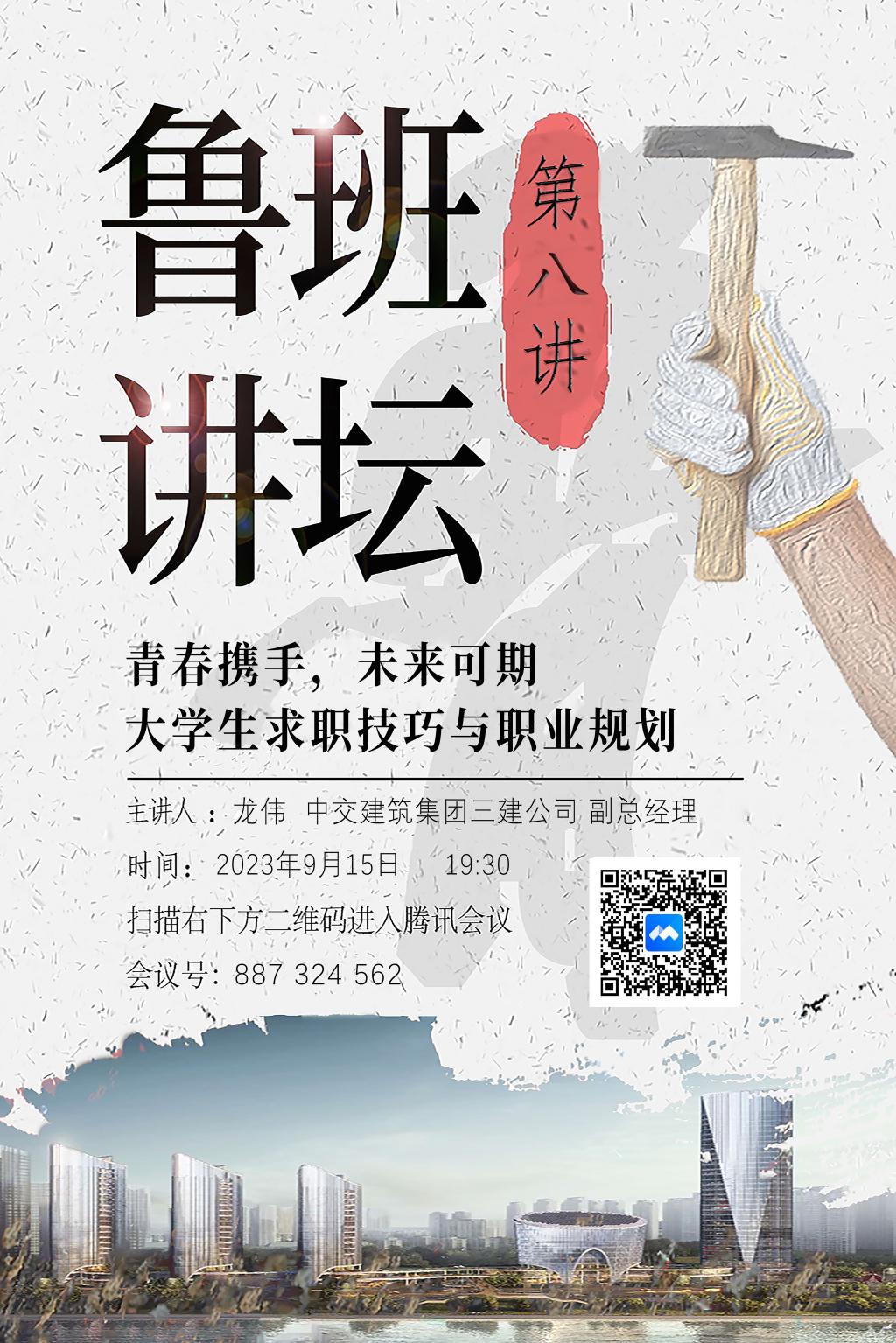 9月15日,应学院邀请,中交建筑集团三公司副总经理、学院优秀校友到校开展鲁班讲坛讲座,结合9月招聘季同学们对于招聘、面试技巧的强烈需求,龙伟以《青春携手、未来可期——大学生求职技巧与职业规划》为题,与同学们一起分享了自己十四年来的职业规划感悟与求职技巧,土木与建筑工程学院200余名学生参加了线下报告,100余名学生在线聆听了报告。讲座由土木与建筑工程学院院长游春华主持。