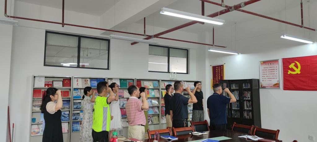 最后,在支部委员谭进的引领下,支部全体同志重温入党誓词,坚定理想信念,牢记初心使命。