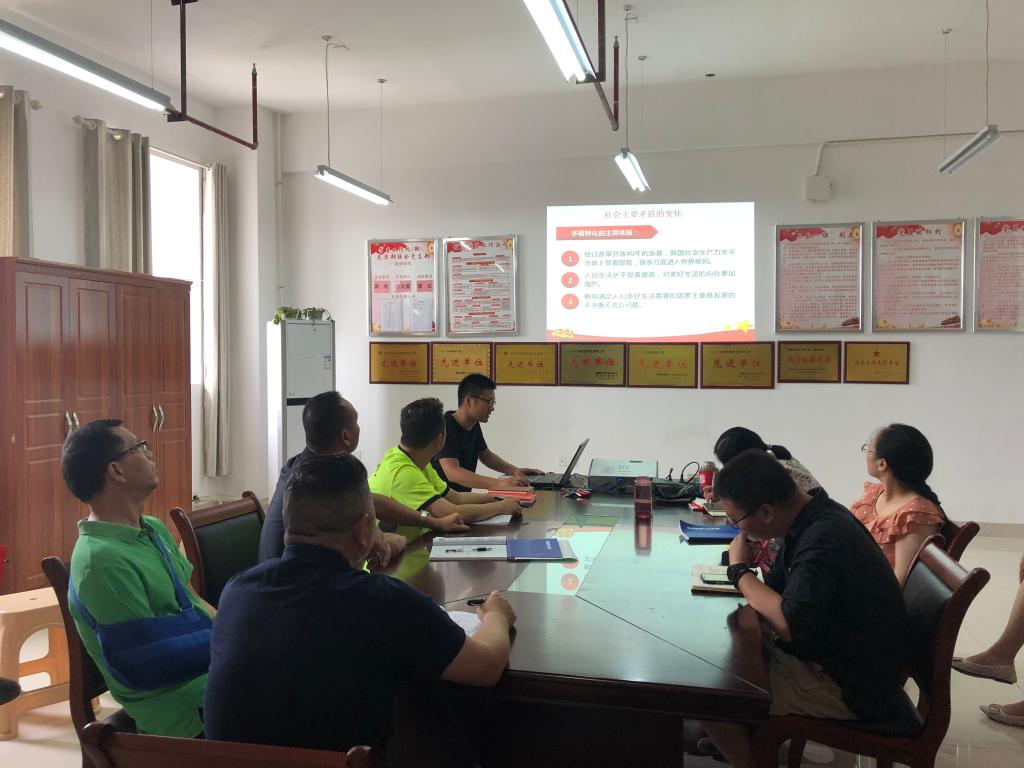 接下来,支部组织委员谭进以《学习领会习近平新时代中国特色社会主义思想》为主题讲党课,他从习近平新时代中国特色社会主义思想的主题与核心要义、丰富内涵、重大意义与要求几个层面出发,详细解读习近平新时代中国特色社会主义思想,加深支部全体成员的理论学习水平。