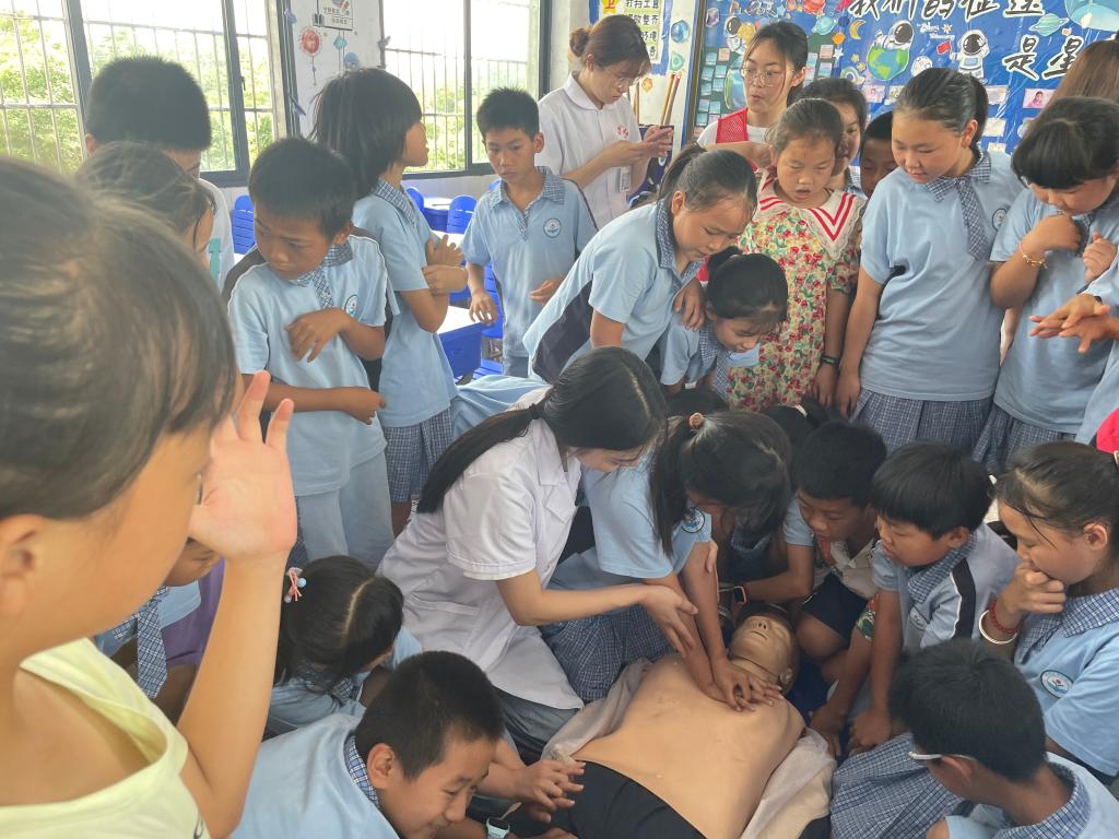 实战实操,严守“生命线”。宣讲团联合珠晖区人民医院医护人员耐心细致地向大家讲解了防溺水注意事项,教导学生如何预防溺水以及发现溺水时怎样进行正确的施救。为增强宣讲效果,利用仿真模型向学生们演示了心肺复苏的基本步骤,现场指导同学们如何正确操作,并邀请学生体验心肺复苏的手法和要点,提高了学生们的安全意识和自救能力。