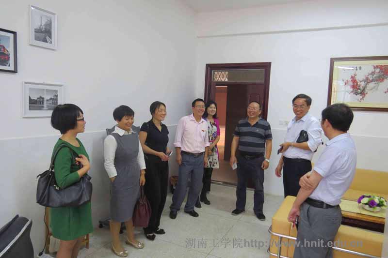杨华峰一行还参观了探花系列建工学院职工小家,建工学院分工会主席彭志忠介绍了职工小家建设情况,杨华峰一行对建工学院职工小家建设给予了高度评价,对建工学院教学大楼的整体环境赞不绝口,称赞建工学院教学楼环境优雅独特、气氛温馨、感人,人文关怀到位,集教学、艺术、以人为本于一身,具有很好的示范作用。(周丹)