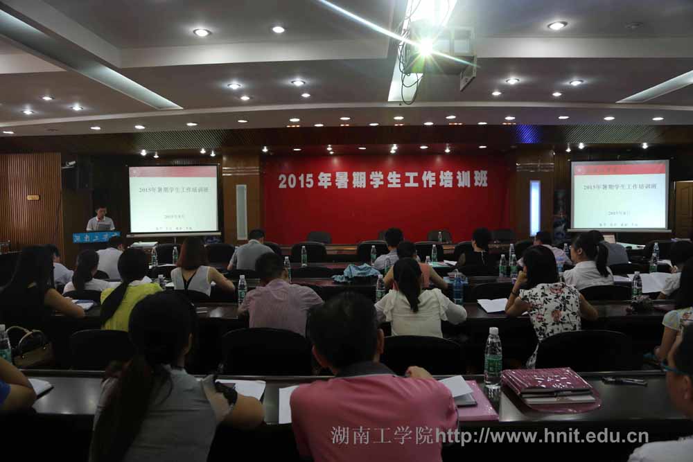 在信息楼大会议室举办2015年暑期学生工作培训班,副校长王利华出席并做主题报告,要求学工系统全体同志坚定信心,应势而为,以优良学风校风迎接本科教学评估。