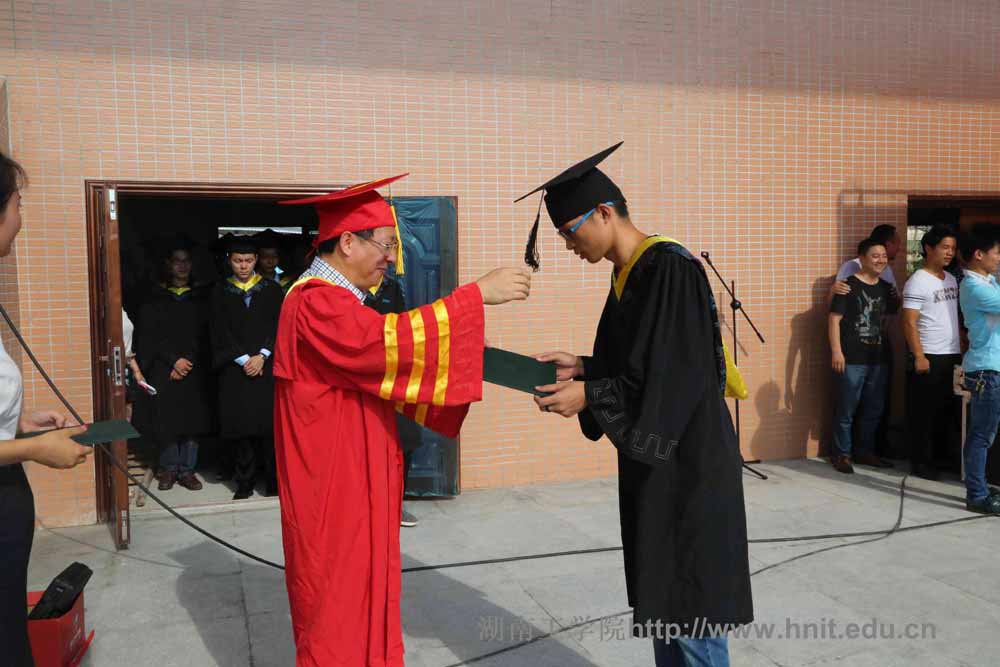 校学位委员会成员、党政办、组织部、宣传部、教务处、教评处、国际合作交流处、学生工作处、科技产业处、招生与就业指导处、后勤管理处、保卫处、图书馆、团委等部门主要负责人,各学院正副院长及党总支正副书记、教师代表、全体2015届毕业生及毕业生家长代表参加了仪式。(周丹)
