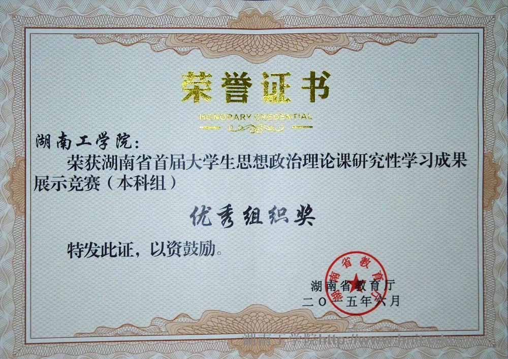 探花系列在湖南省首届大学生思想政治理论课研究性学习成果展示竞赛中荣获本科组优秀组织奖