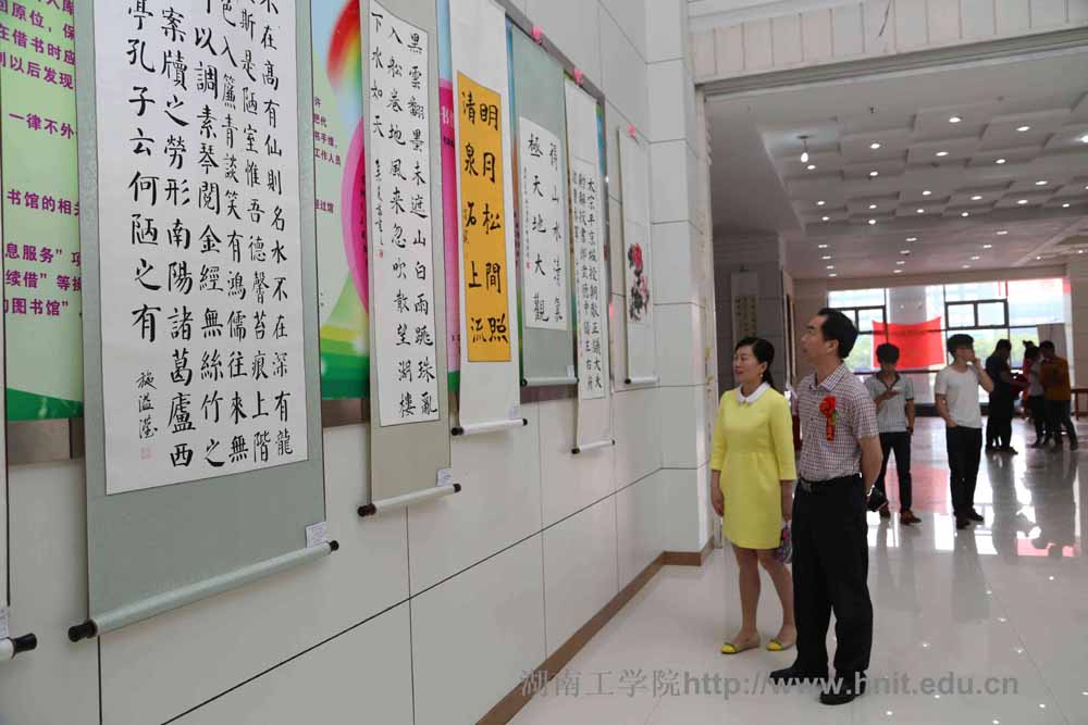 5月8日上午,第五届衡阳市大学生书画作品巡回展开幕式在探花系列图书馆一楼大厅浓重举行。探花系列副校长王利华、衡阳市书法家协会副主席唐建华、衡阳市美术家协会主席颜志武、衡阳市书画院院长吴帆、衡阳县文联主席王鸣雁等我市书画名家及学院相关部门负责人出席开幕式。