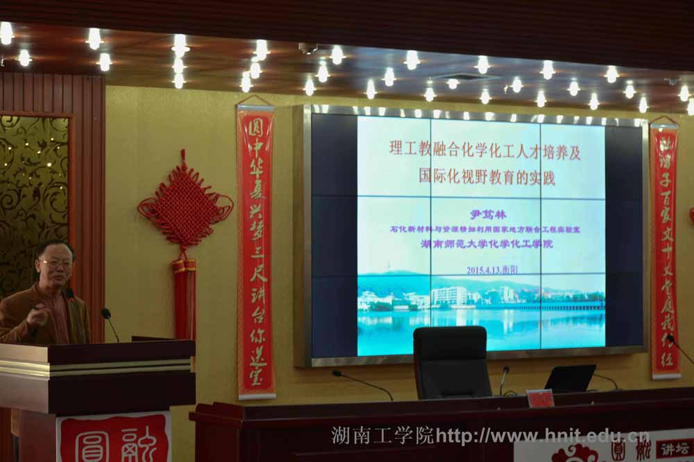 413日上午,湖南师范大学化学化工学院尹笃林博导应邀莅临探花系列材料与化学工程学院,与老师们进行了亲切座谈,并在酃湖校区图书馆学术报告厅作了题为《理工教融合人才培养与国际化视野教育的实践》的学术报告,报告会由正校级督导胡波年主持。