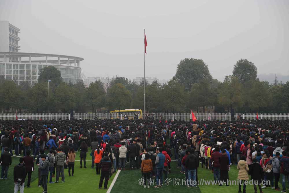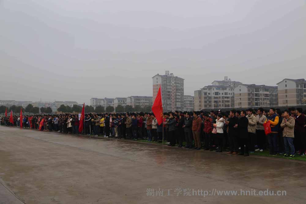 酃湖校区上班的中层干部、全体辅导员和酃湖校区在校学生近2万人参加了升国旗仪式。(小乐)