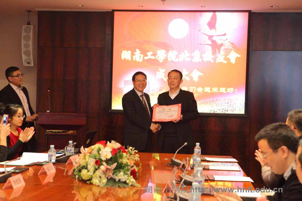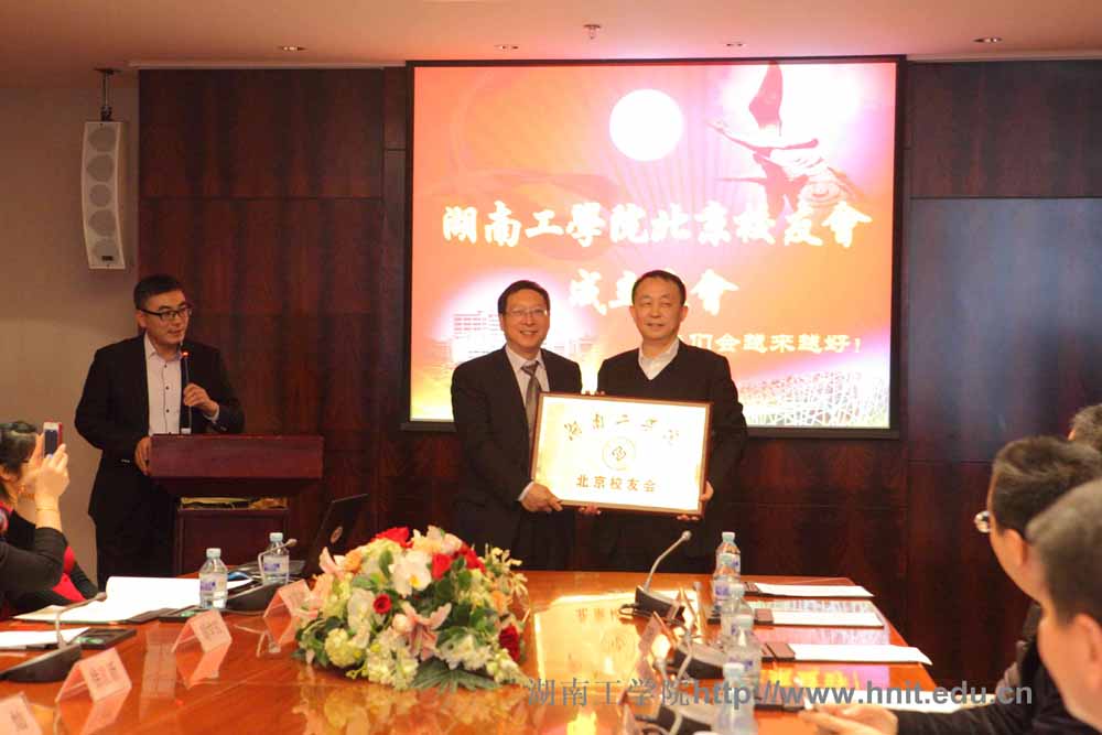 北京校友会的成立表示祝贺,向新任会长授予了北京校友会牌匾,并为选举产生的第一届理事会成员颁发聘书。